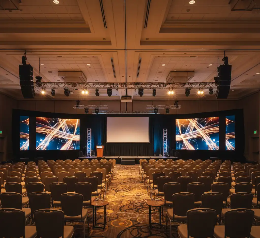 Looking weary of high-priced hotel AV services in Orlando? Hotel AV Rental Orlando offers an alternative to in-house AV, which is professional, fully compliant, and cost-effective. Our company collaborates with the leading venues and hotels in the country, such as the Orange County Convention Centre (OCCC), Hilton, Marriott, and Rosen establishments. We are completely EAC Aproved, have all the necessary cOIs, and know how to plan the dock of the hotels and union necessities.